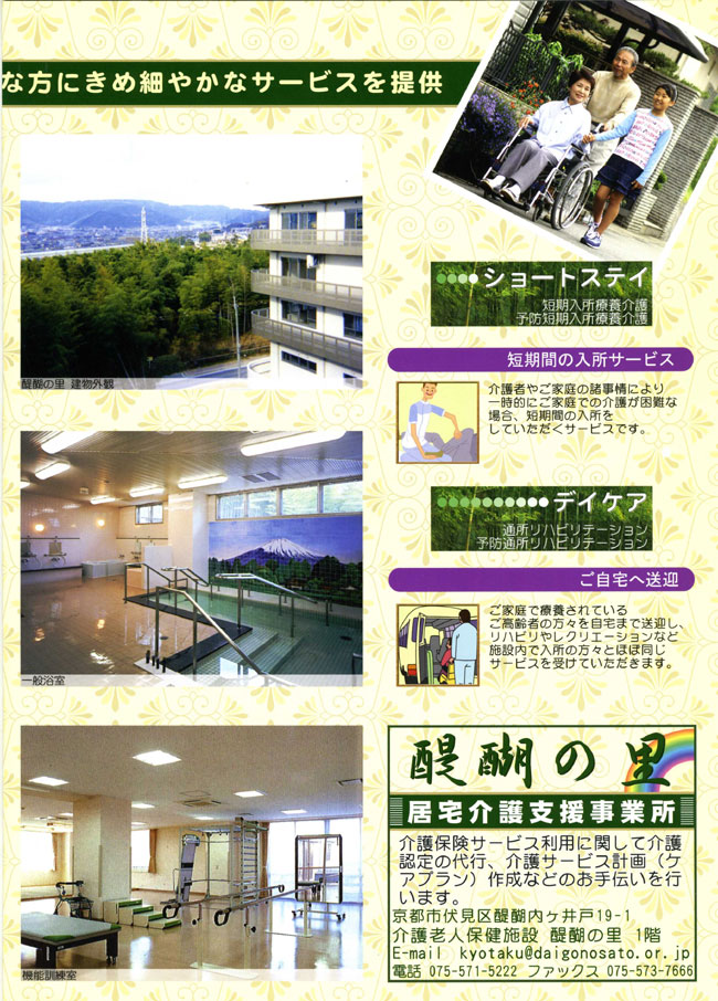 ◆パンフレットの作例 介護老人保健施設 醍醐の里 A3中折 3ページ